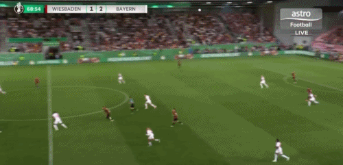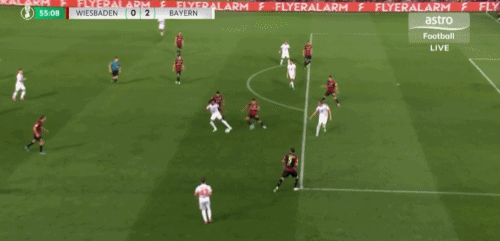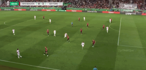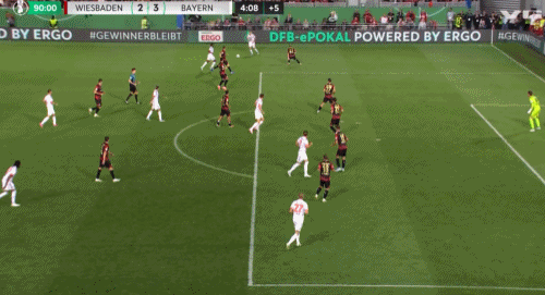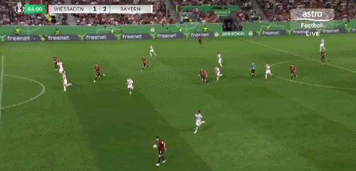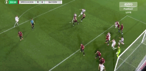 第64分钟,卡亚禁区铲射破门,韦恩威斯巴登1-2拜仁