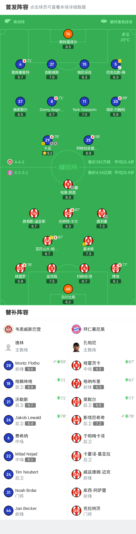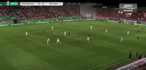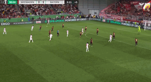第69分钟,卡亚单刀抽射梅开二度,韦恩威斯巴登2-2扳平拜仁
